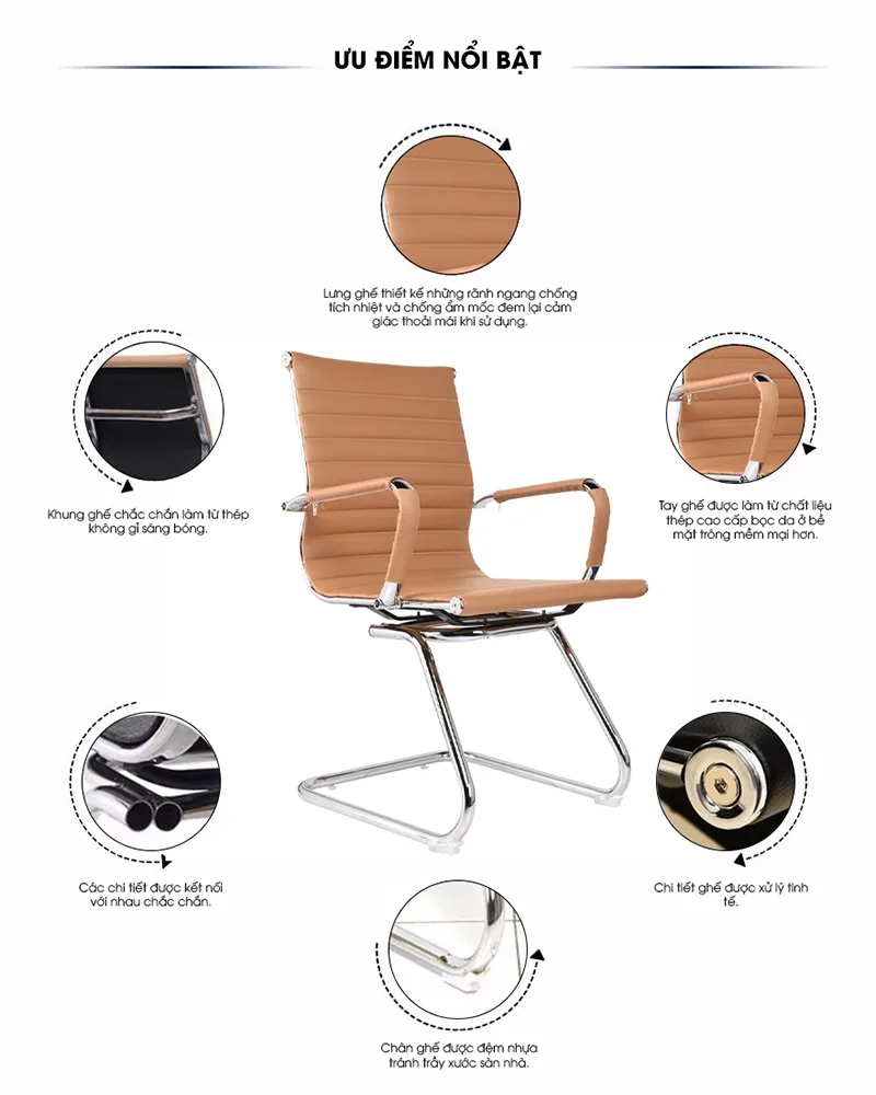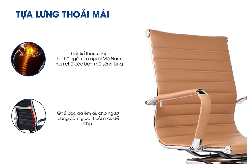 - Lưng Ghế da Thoáng Mát: Thiết kế lưng thấp với da giúp giảm cảm giác nóng bức và hỗ trợ lưng tốt trong các cuộc họp hoặc làm việc lâu dài.