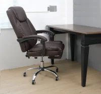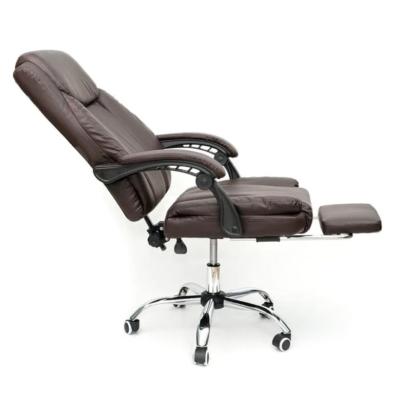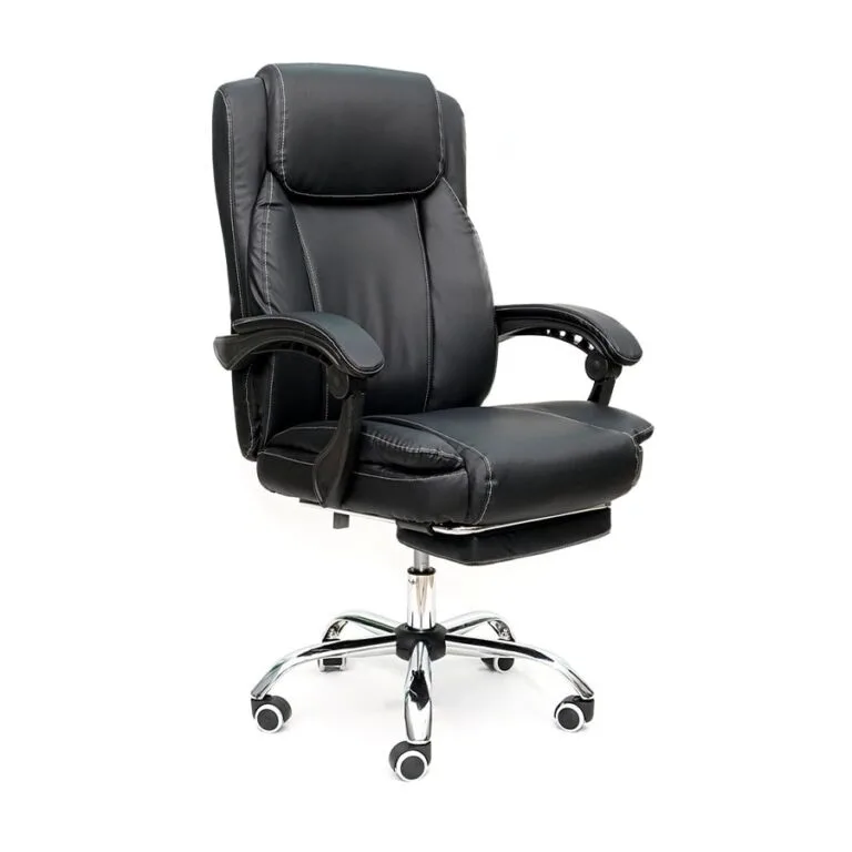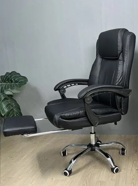 Ghế được bọc da PU cao cấp, mang lại cảm giác mềm mại và thoáng khí, không gây nóng bức khi ngồi lâu. Chất liệu này không chỉ dễ dàng vệ sinh mà còn bền đẹp theo thời gian, không bị nứt nẻ hay bong tróc như các loại da thông thường. Phần lưng và đệm ghế được làm từ mút dày dặn, hỗ trợ tốt cho cột sống và vùng thắt lưng, giúp người dùng không bị đau mỏi khi ngồi lâu.