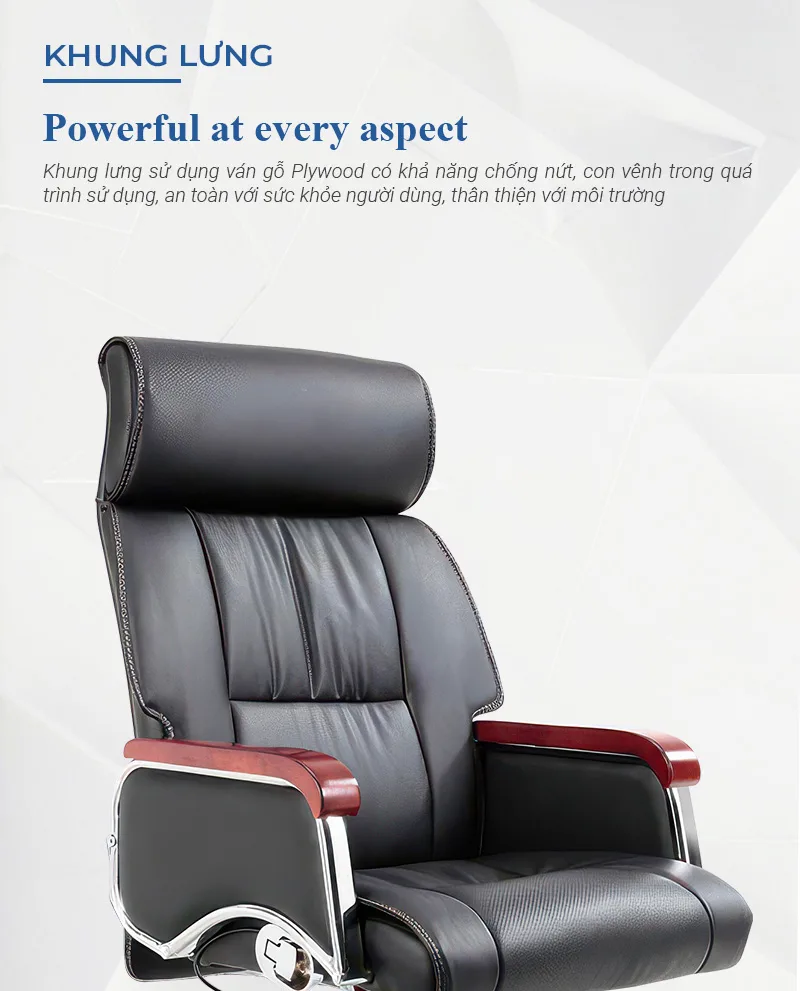 | Chân ghế | Chân ghế hợp kim nhôm đúc nguyên khối, thiết kế độc quyền, không han gỉ suốt quá trình sử dụng, chịu tải trọng lên đến 1136kg |
